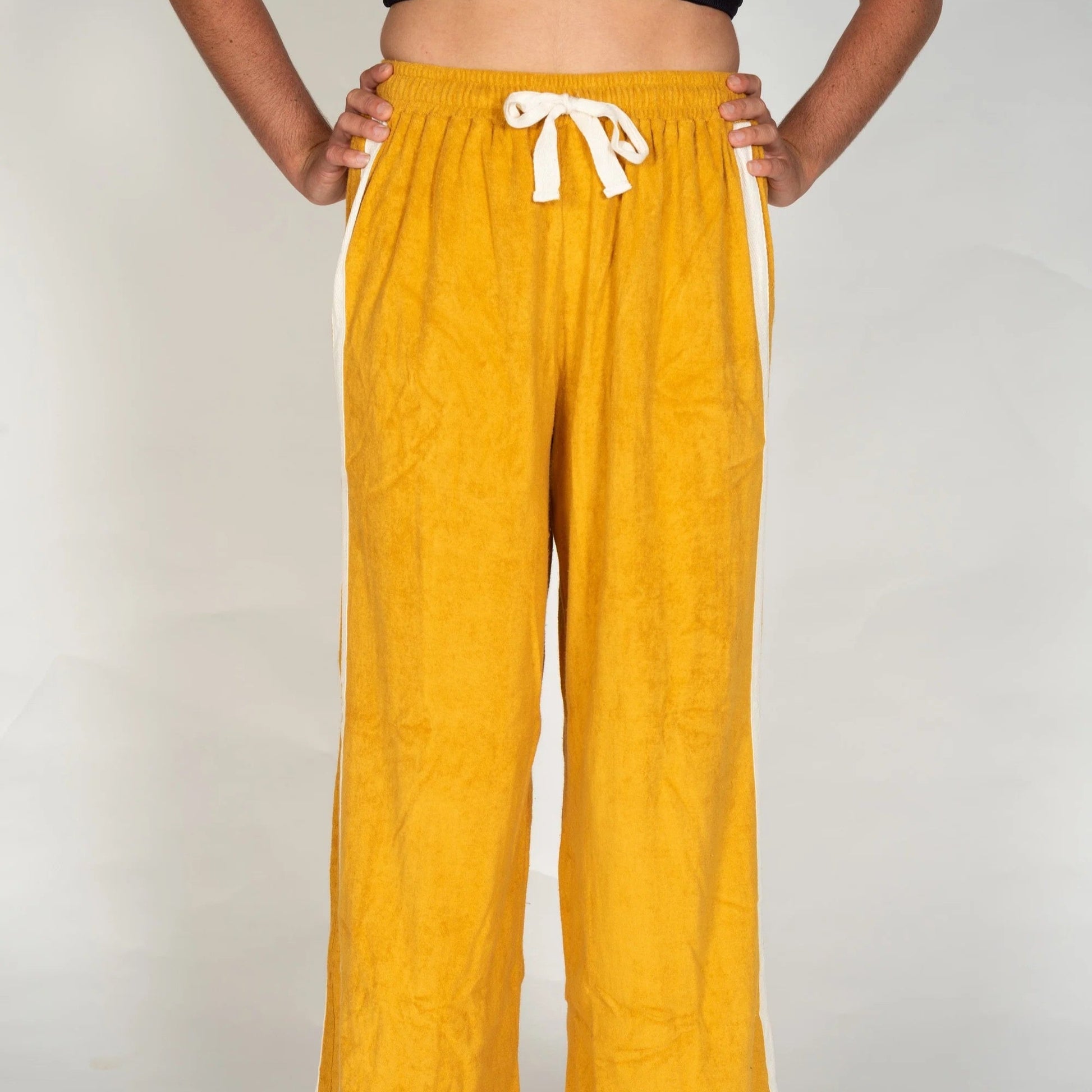 You know the feeling of getting out of the surf and having to put jeans back on? Sticky, salty skin is better matched to soft, warm, loose, and comfortable track pants. A limited-edition piece made of soft organic terry-toweling in our cobalt blue with a relaxed, unisex fit and a canvas drawstring waist & sporty 70's vibe canvas side stripe.