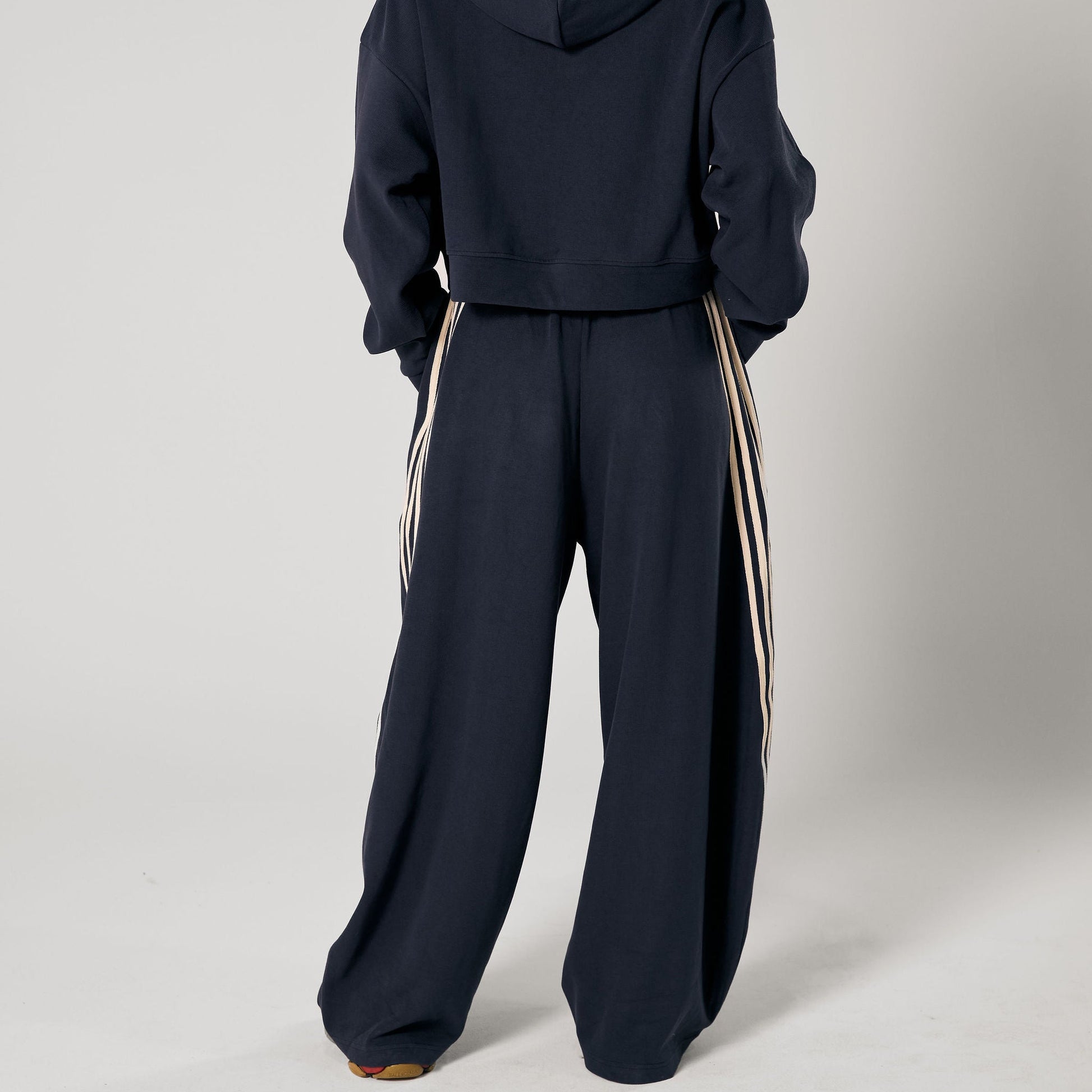 loungewear. Designed with an exaggerated wide-leg silhouette, they’re crafted from a