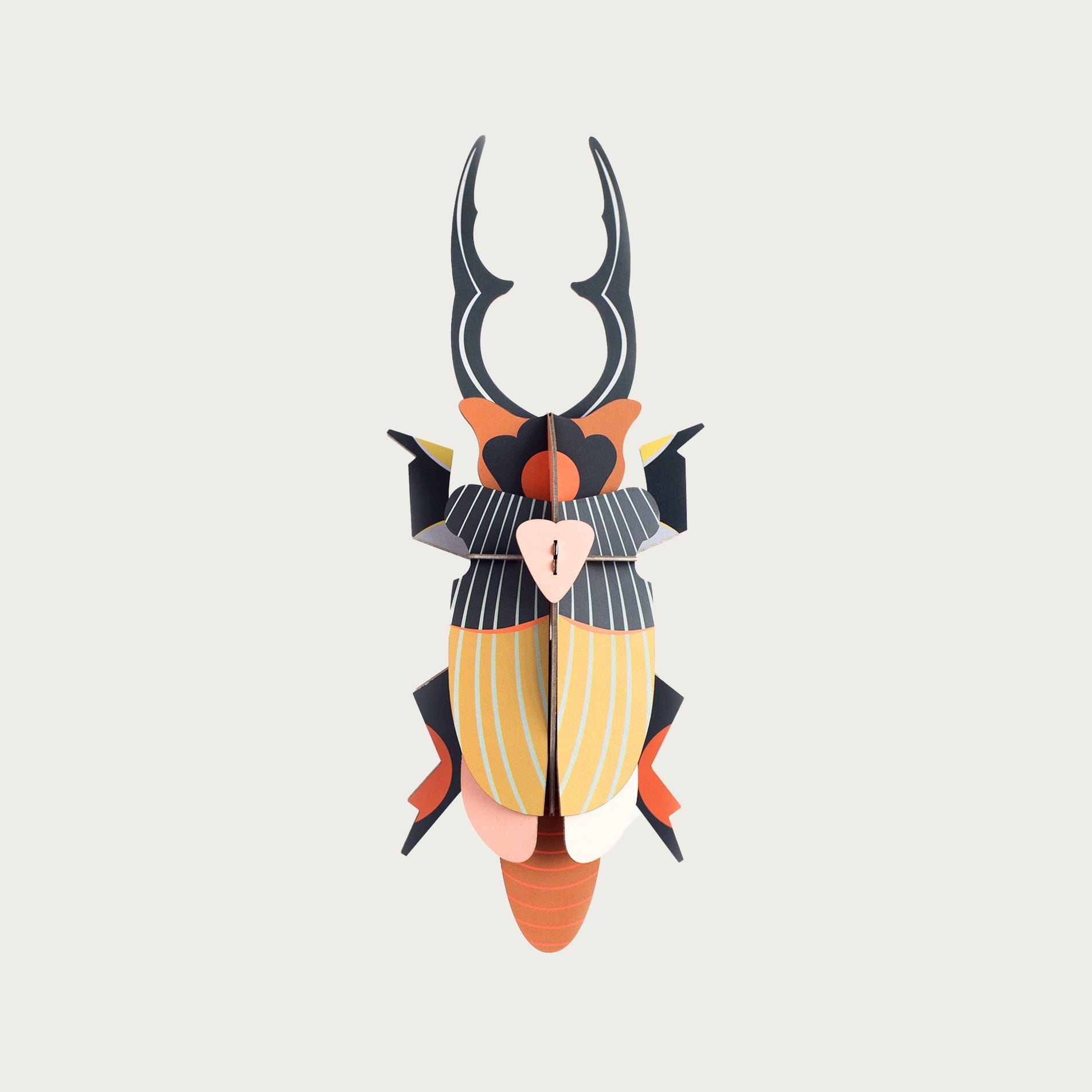 In real animal life, they inconspicuously scuttle about under leaves and on branches, but these flamboyant and colourful beetles – from every corner of the world – look as if they have just stepped off the catwalk. Give them a place among your artistic treasures, hang them on the wall, let them crawl around on your table and create your own insect story.