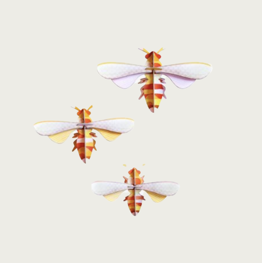 Imagine: you hear water dripping, birds singing and, suddenly, there are three colourful creatures fluttering around your head, so delicate and enchanting that they take your breath away. And before you know it, they are gone! Fortunately, you can hang this set of three bees on your wall at home and admire them for as long as you like.