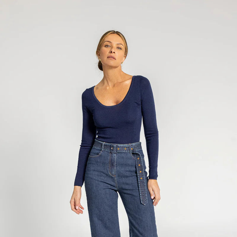 The ballet-inspired modern shape offers interest to this beautiful foundational piece. Crafted in soft- non-itchy Merino Wool, you will be reaching for this piece day and night. Wear as a statement top on mild days or layer under knits & coats through the winter season.