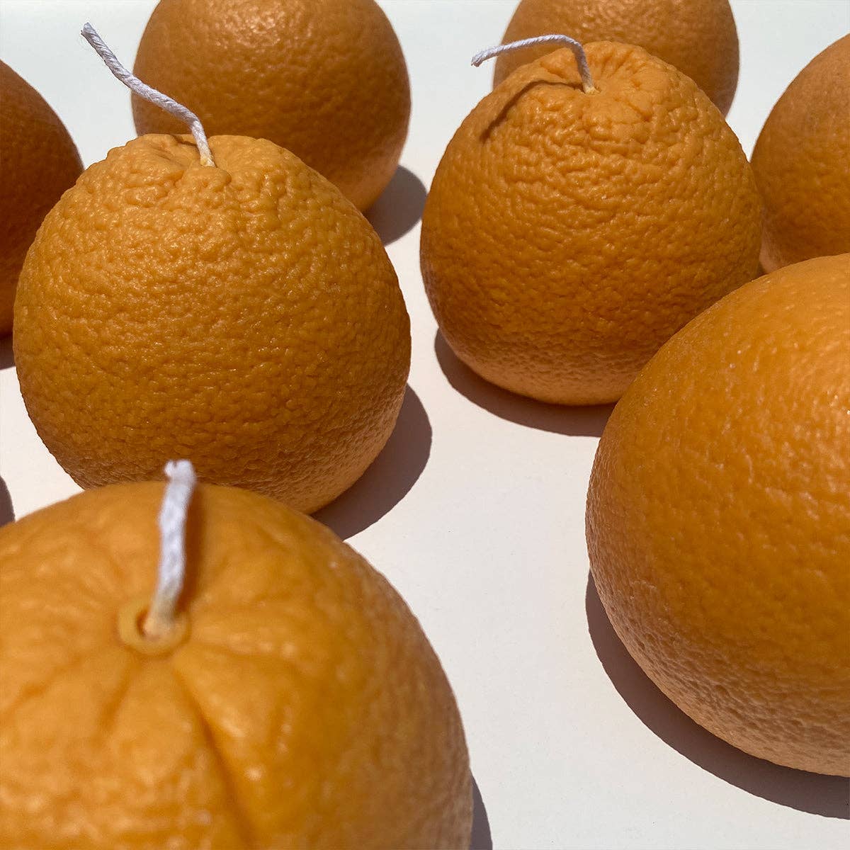 Introducing Scandles' Tangy Temptation Navel Orange Candles! These delightful candles combine the zesty scent of blood oranges with a playful navel orange shape.