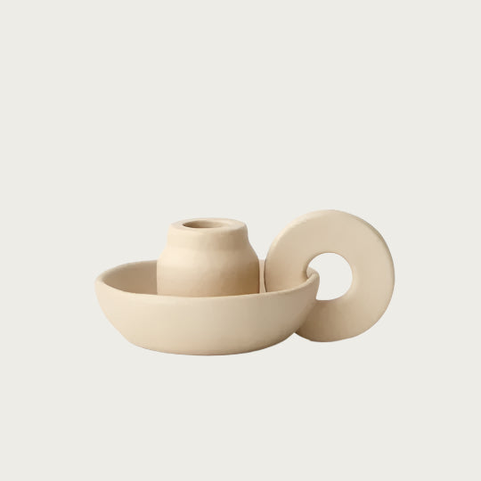 The Matilda candle holder in almond is designed to hold Taper Dinner candles. This candle holder is handmade, due to the nature of handmade items there may be slight variations in the size, surface texture, glaze consistency, colour or tone of the item.