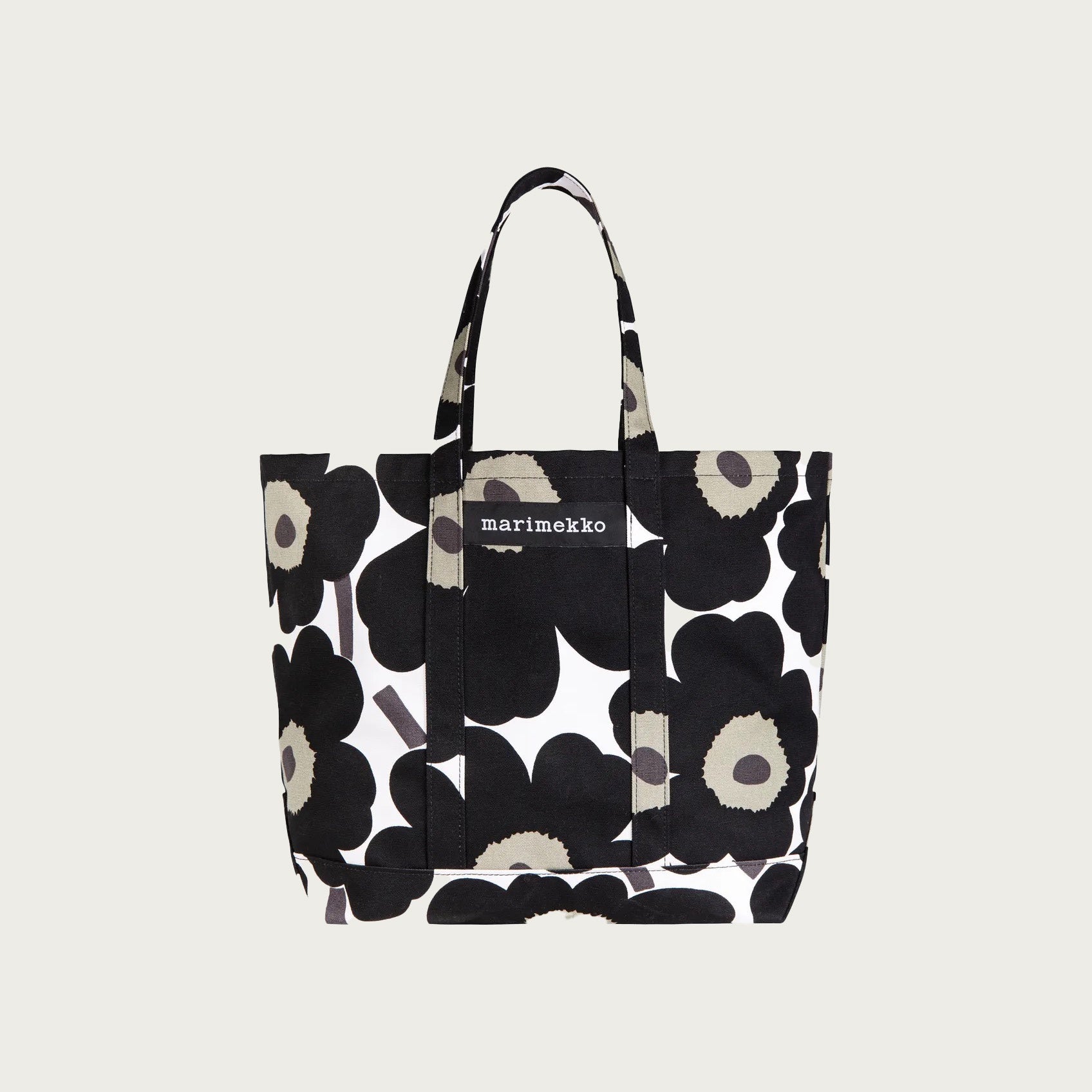 The Peruskassi bag is made of heavyweight cotton canvas in the Pieni Unikko pattern, which is printed in Helsinki. The bag has two sturdy handles and room for all your daily essentials.