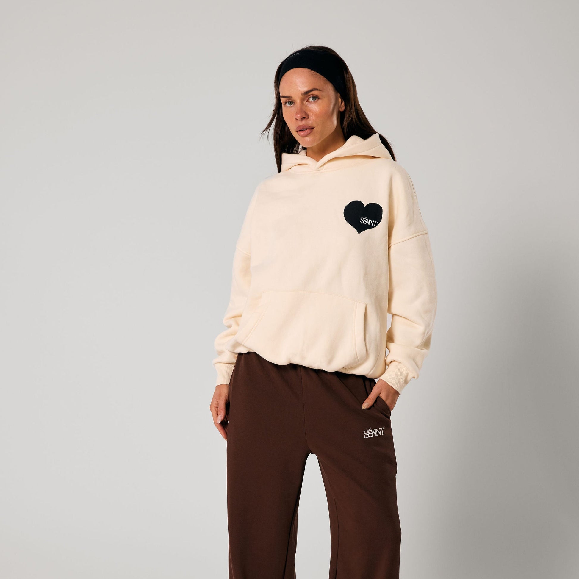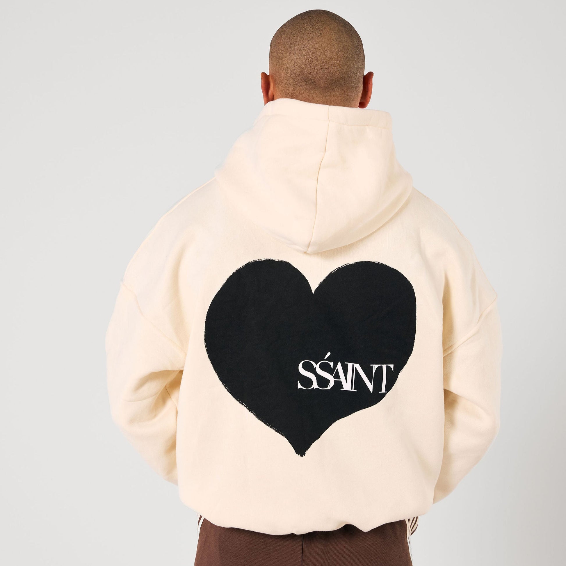 You asked, SŚAINT listened. The best-selling Heart Tee just got the cozy upgrade: Now available as the Heart Hoodie in Butter with a bold black heart and clean white SŚAINT logo. Fleece lined -