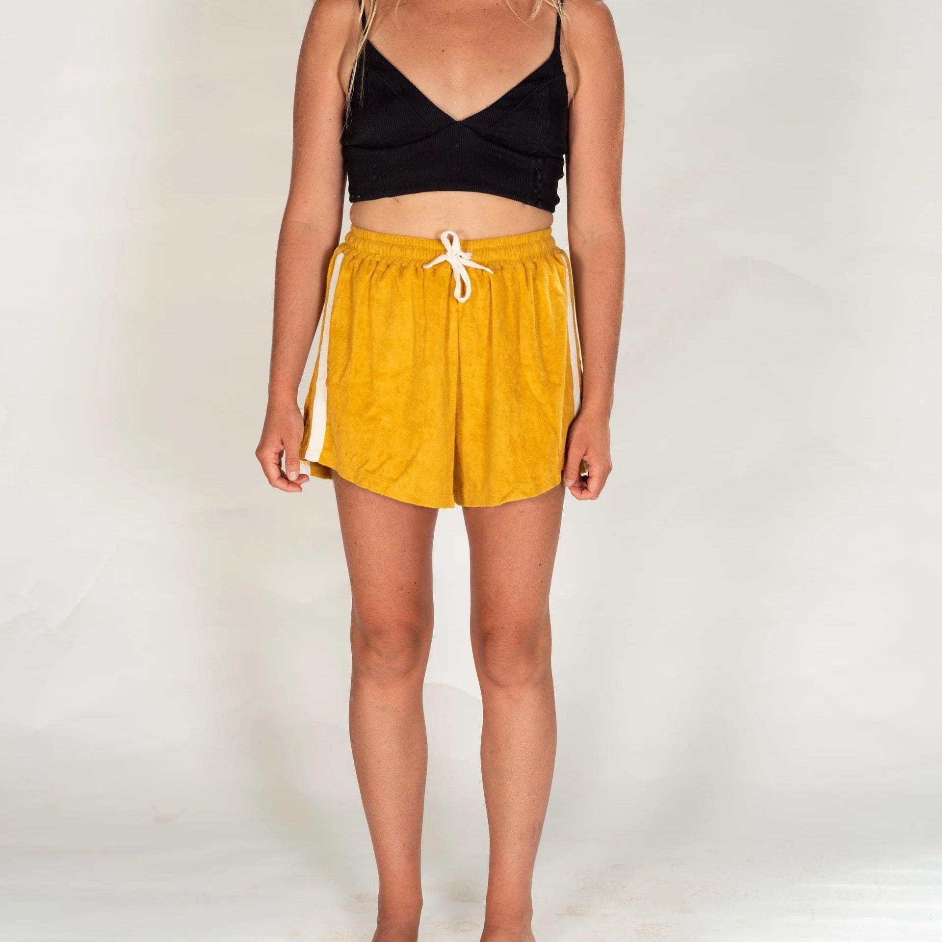 Let's keep this short and sweet – these shorts are the bomb. Inspired by the groove of the 70's- they're made of 100% cotton, with a sporty stripe on the side, an elasticated waist with drawstring, and two side slits to add even more swing to your step. We think these shorts are perfect for anytime of the day or night and are so excited to be sharing them with you! Team them with any of out tee's for a steeze inspired by passed times.
