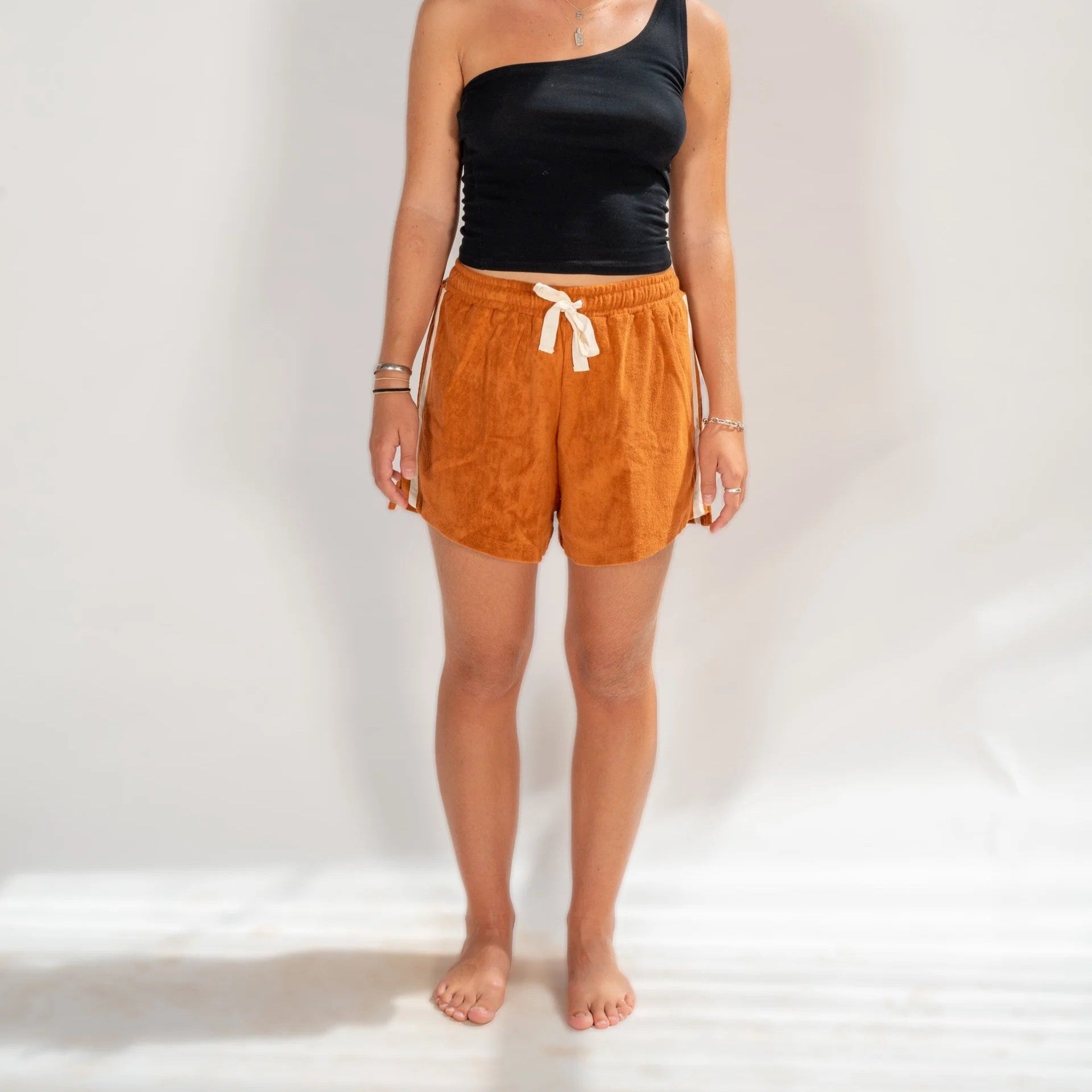 et's keep this short and sweet – these shorts are the bomb. Inspired by the groove of the 70's- they're made of 100% cotton, with a sporty stripe on the side, an elasticated waist with drawstring, and two side slits to add even more swing to your step. We think these shorts are perfect for anytime of the day or night and are so excited to be sharing them with you! Team them with any of out tee's for a steeze inspired by passed times.