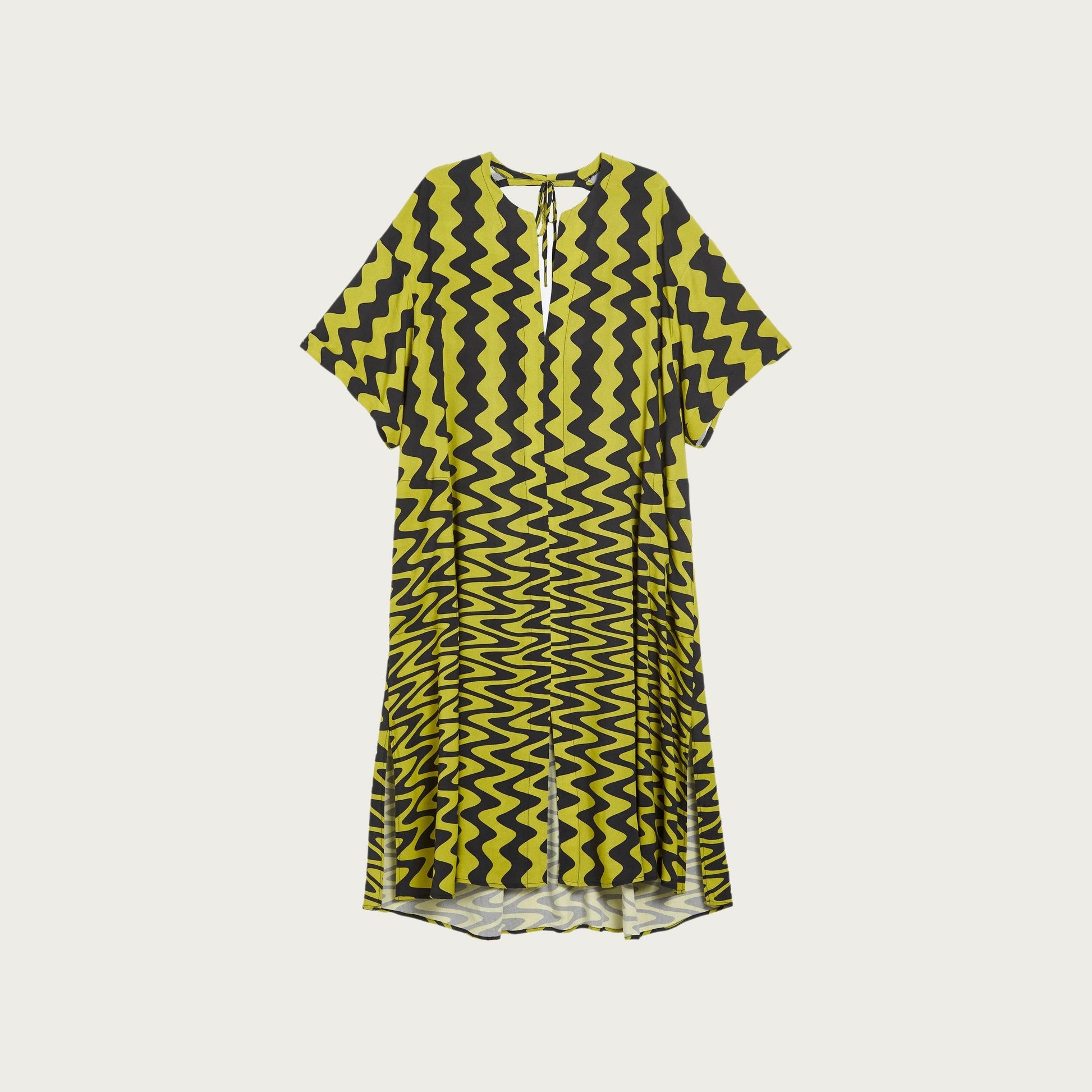 The Wiggle Tangelo Viscose Dress has a straight silhouette and short sleeves. The dress is completed with slits both in the front and on the sides of the dress. It is designed for movement. Tangelo contains side pockets and an open back with a tunneled drawstring for comfortable adjustment.